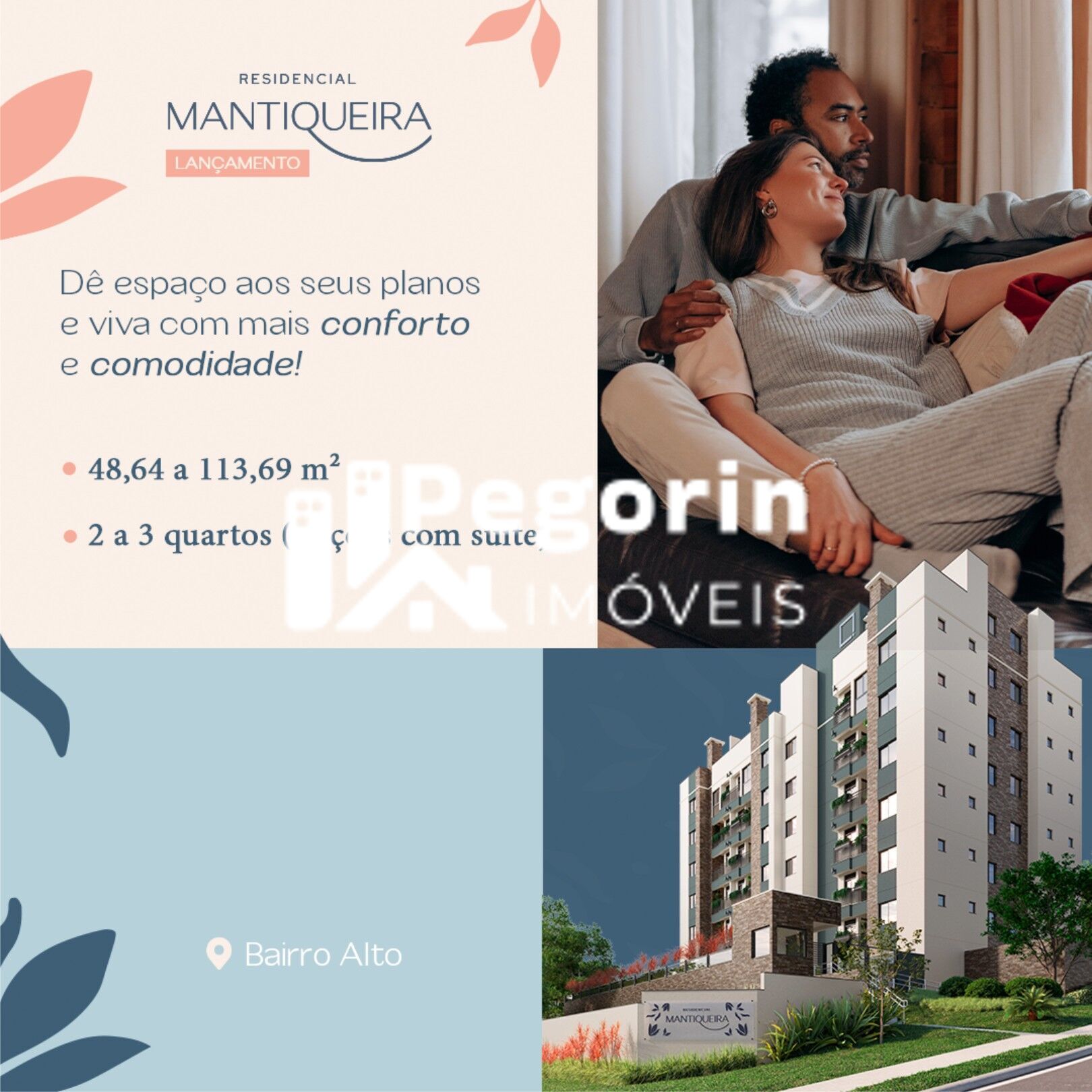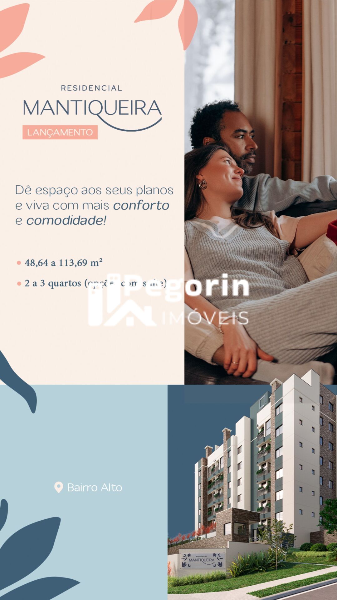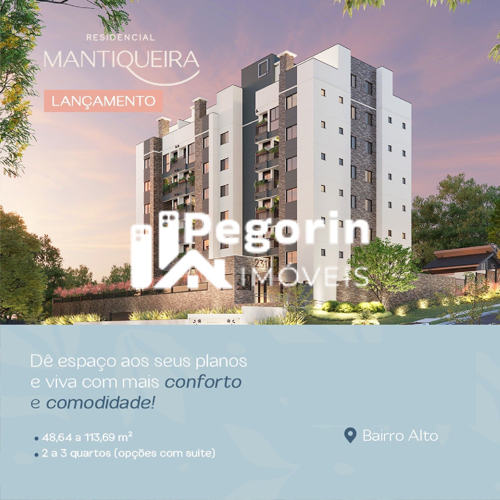 RESIDENCIAL MANTIQUEIRA AP Padrão Localizado em um dos pontos mais altos da cidade, o BAIRRO ALTO é considerado um dos polos econômicos da capital, contando com uma boa gama de comércios, indústrias, hospitais e instituições de ensino. Com fácil acesso à Linha Verde, o centro da cidade fica à apenas 15 minutos de carro, estrategicamente posicionado para estar perto de tudo o que você precisa. UNIDADES DE 48,64 m² a 113,69 m² ?Apartamento/Garden de 2 quartos com 1 banheiro; ? Apartamento/Garden de 2 quartos (1 suíte) com 2 banheiros; ? Duplex com 3 quartos (1 suíte) com 3 banheiros; ? Duplex com 3 quartos (2 suítes) com 3 banheiros e 1 lavabo. AS UNIDADES CONTARÃO COM OS DIFERENCIAIS: Piso de porcelanato em todo o apartamento ? Sacada com churrasqueira ? Revestimento cerâmico até o teto na área de serviço, cozinha e banheiro ? Área técnica para instalação de ar-condicionado ? Forro de gesso no banheiro ? Ponto de instalação de aquecedor a gás ? Tubulação de água quente no banheiro e cozinha ? Medição individualizada de água e energia ? Ponto para instalação de ofurô (apartamentos Garden e Duplex) A ÁREA DE LAZER SERÁ CONTEMPLADA COM: ? Praça Família ? Fire Place ? Espaço Zen ? Playground ? Salão de Festas ? Brinquedoteca ? Academia ? Espaço Multiuso Dê espaço aos seus planos, deixe o agito fora de casa e sinta o acolhimento e leveza do seu lar com o RESIDENCIAL MANTIQUEIRA.