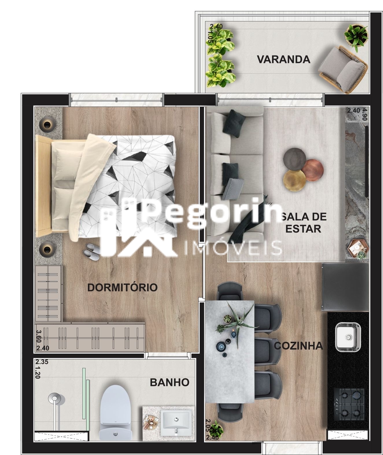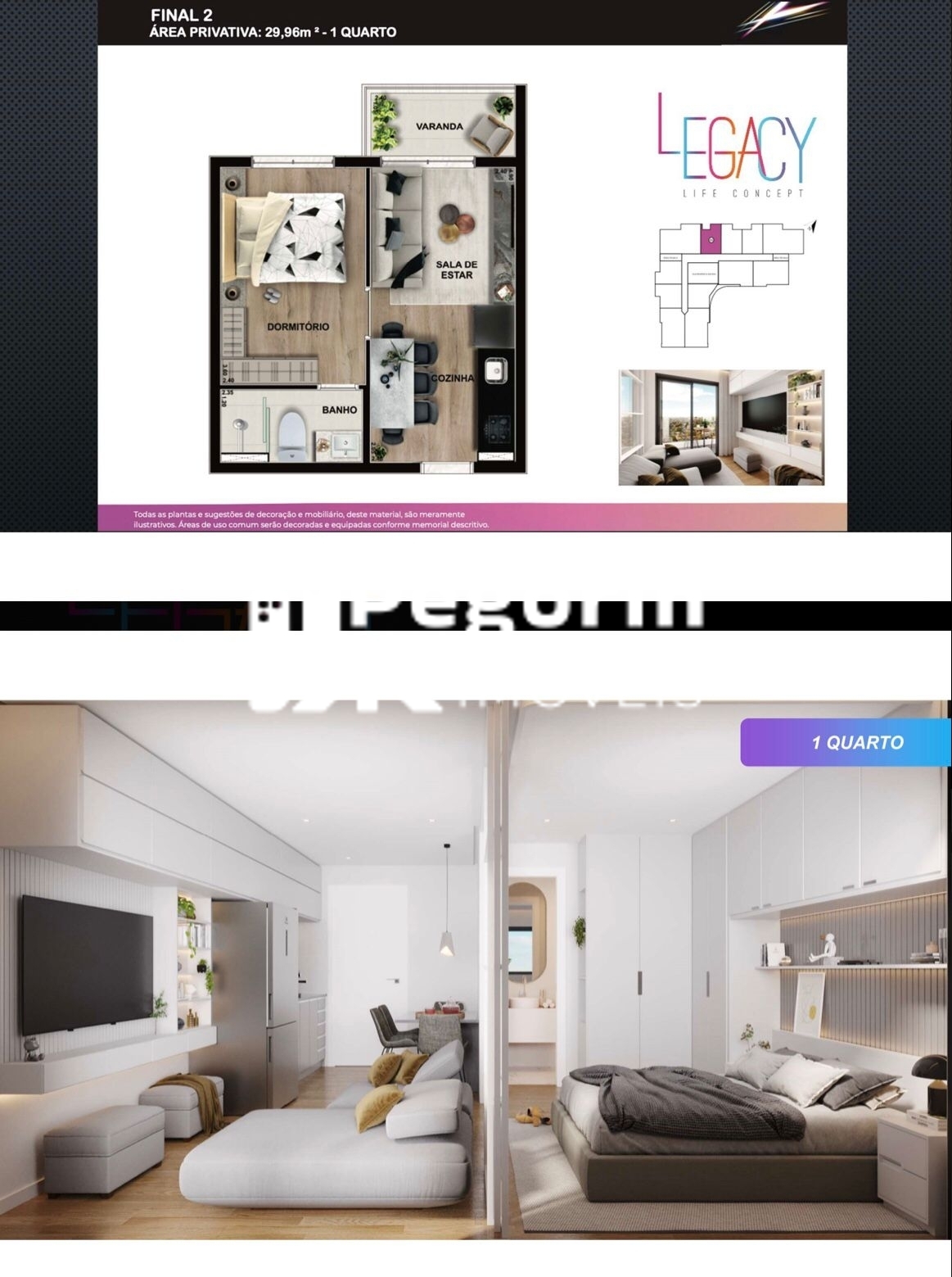 Apartamento à venda, no Legacy em Pinhais, Centro, com 1 quarto, 30,49m²