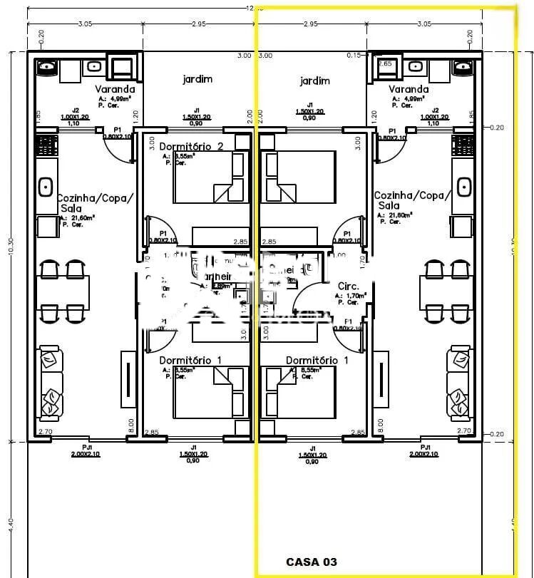 CASA 01 FRENTE . 259.900,00 , CASA 02, 03 , FUNDOS , 249.900,00