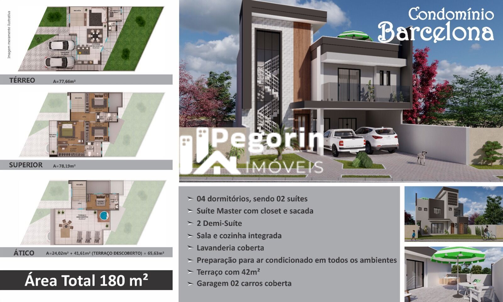 Casa Condomínio Fechado Residencial Barcelona * Bairro Uberaba* Sobrado Triplex.* Com 180 m2.* 42 m2 Terraço.* 4 Dormitórios sendo 2 Suítes e Demi Suíte.* Bwc Suíte casal com 02 chuveiros. Aquecimento a gas.* 1 Lavabo.* 1 Sala de jantar, estar e cozinha integrada. * Escada Vazada em Mármore.* Infra para ar condicionado.* Infra para piso aquecido na suíte casal.* Lavanderia Fechada.* Churrasqueira * Ático com preparação para Jacuzi.* Sacadas na Suíte.* Vaga para 4 Carros com preparação de tomada carro elétrico.* Espaço de terreno Fundos.* Condomínio com * Salões de Festas, parque.* Portaria Eletrônica 24 horas.As informações estão sujeitas a alterações. Consulte o corretor responsável.